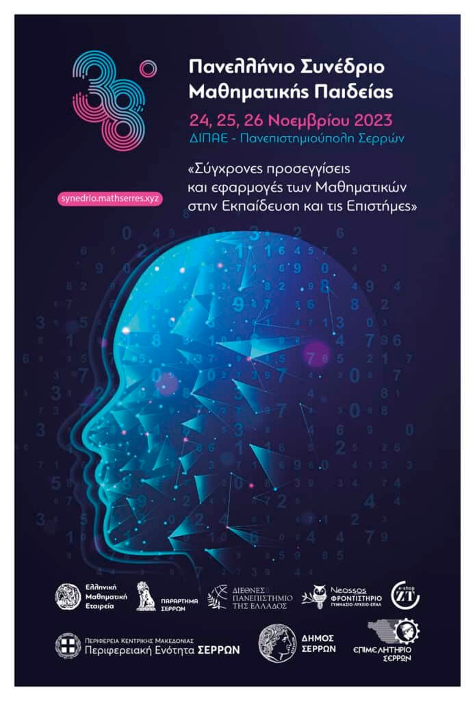 38° Πανελλήνιο Συνέδριο Μαθηματικής Παιδείας με θέμα «Σύγχρονες προσεγγίσεις και εφαρμογές των Μαθηματικών στην Εκπαίδευση και τις Επιστήμες» το οποίο θα πραγματοποιηθεί στις 24-25-26 Νοεμβρίου 2023 στην πανεπιστημιούπολη Σερρών.