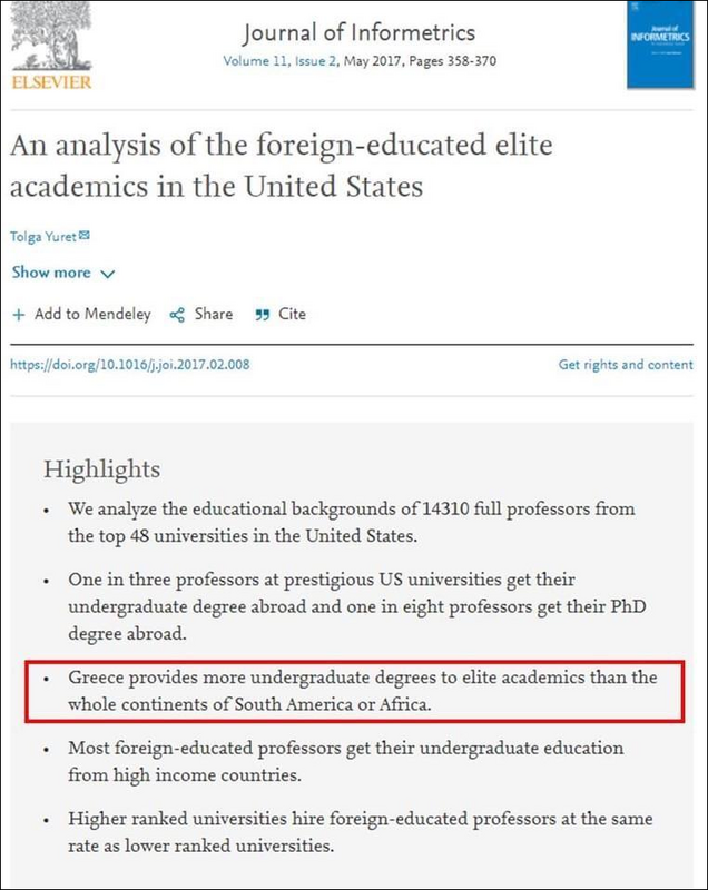 Εικόνα 1: Κορυφαίοι καθηγητές σε Πανεπιστήμια των ΗΠΑ με βασικές σπουδές σε ελληνικά ΑΕΙ.