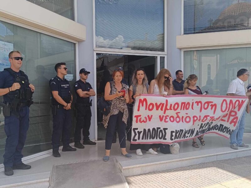 Απίστευτες καταστάσεις ντροπής καταγγέλλεται ότι εκτυλίχθηκαν στην κινητοποίηση στη διεύθυνση εκπ/σης Δυτ.Αττικής όπου εκπαιδευτικοί και σωματεία διεκδίκησαν για πολλοστή φορά τα αυτονόητα. Δείτε την αναλυτική ανακοίνωση: Σύλλογος Εκπαιδευτικών Π.Ε “Ηρώ Κωνσταντοπούλου” Πρώτη μέρα στα σχολεία με την αστυνομία να υποδέχεται τους εκπαιδευτικούς στη Διεύθυνση Δυτικής Αττικής και να προβαίνει σε προσαγωγή εκπαιδευτικού φορώντας του χειροπέδες! … Συνεχίστε να διαβάζετε το Πανικός στη Δ/νση Π.Ε. Δυτ. Αττικής – Χειροπέδες σε εκπαιδευτικό και 20 αστυνομικοί ήταν η υποδοχή στην κινητοποίηση.