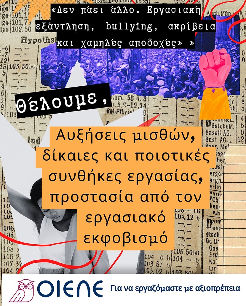Ενώνουμε, λοιπόν, τις φωνές μας με τον κόσμο της εργασίας και ζητούμε επαναφορά του καθεστώτος των συλλογικών διαπραγματεύσεων εδώ και τώρα! Ζητούμε γενναίες αυξήσεις και επαναφορά του 13ου και 14ου μισθού! Οι εκπαιδευτικοί πρέπει να εργάζονται με αξιοπρεπείς συνθήκες εργασίας και αμοιβής, πρέπει να μπαίνουν στις τάξεις τους με το κεφάλι ψηλά κι όχι εξαθλιωμένοι και ταπεινωμένοι.
