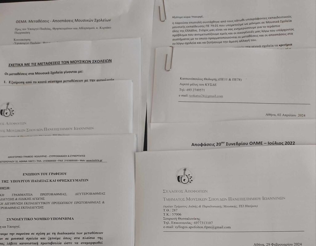 Σχετικά με την / Αλλαγή πλαισίου μεταθέσεων – αποσπάσεων σε Μουσικά Σχολεία: Διεκδικήσεις και ενημέρωση από τον Θ. Κατσωνόπουλο