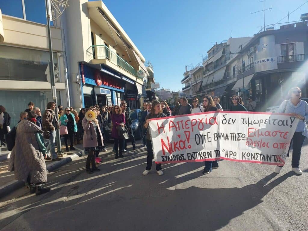 Διαβάστηκε σε όλη την κοινωνία το κείμενο στήριξης και αλληλεγγύης στις/στους διωκόμενες/ους της επιτροπής αγώνα του συλλόγου μας, που υπογράφεται όχι μόνο από τους/τις 73 νεοδιόριστους/ες, αλλά πλέον από πάνω από 200 εκπαιδευτικούς του ΣΕΠΕ «Ηρώ Κωνσταντοπούλου» που βρίσκονται στο πλευρό όσων στο πρόσωπο τους αντιλαμβάνονται ότι θα είναι οι επόμενοι. Γιατί ο αγώνας που δίνουμε, αφορά το μέλλον μας, το μέλλον του δημόσιου σχολείου και των παιδιών μας! Κι όπως χαρακτηριστικά αναφέρει το κείμενο «ΔΙΩΚΟΜΑΣΤΕ ΓΙΑΤΙ ΑΠΕΡΓΟΥΜΕ! Είμαστε οι “παράνομοι” εκπαιδευτικοί και διωκόμαστε γιατί διαλέξαμε πλευρά… Είμαστε με τους μαθητές μας και τις μαθήτριές μας, με την επιστήμη μας, με το Δημόσιο Σχολείο, με την κοινωνία που δίνει ίσες ευκαιρίες σε ΟΛΟΥΣ και ΟΛΕΣ, δίχως κριτήρια και προϋποθέσεις! Αυτόν τον κόσμο επιθυμούμε, γι’ αυτόν παλεύουμε!!»