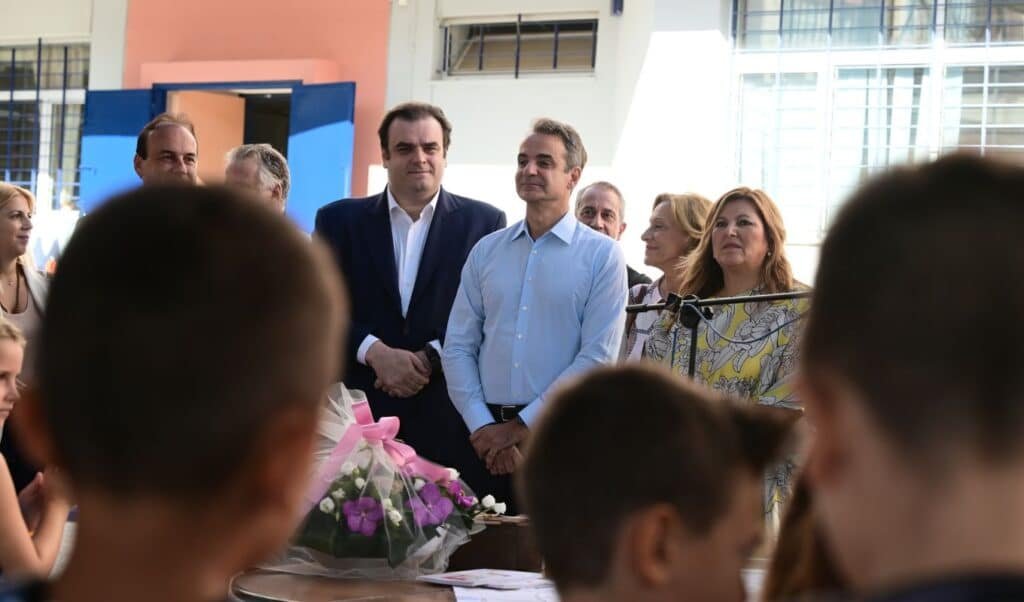 Σε μια αποκλεισμένη περιοχή από πάνοπλους αστυνομικούς οι Μητσοτάκης και Πιερρακάκης . Από το πρωί απώθησαν τους μαχόμενους εκπαιδευτικούς από την είσοδο του σχολείου για να περάσουν ανενόχλητοι.