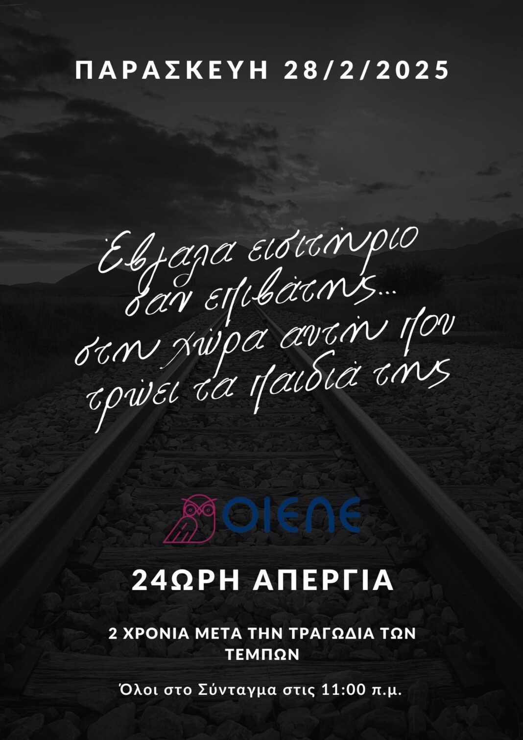 «Έβγαλα εισιτήριο σαν επιβάτης στη χώρα αυτή που τρώει τα παιδιά της» – Όλοι στην απεργία της ΟΙΕΛΕ και στο συλλαλητήριο του Συντάγματος 28/2 στις 11 π.μ.
