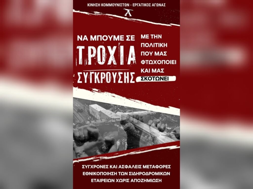 Είναι επιτακτική ανάγκη να δυναμώσει το πολιτικό, κοινωνικό, ιδεολογικό ρεύμα που θα μπορεί να ενώνει πλατιά τμήματα της κοινωνίας που πλήττεται, με στόχο να μετράμε νίκες, να χαλάμε σχέδια και κατευθύνσεις του συστήματος, να βάζουμε μπροστά το μεγάλο πρόβλημα της χώρας: ότι ντόπιοι και ξένοι μεγάλοι επιχειρηματικοί όμιλοι, ΕΕ και ΗΠΑ, έχουν μετατρέψει την Ελλάδα σε κράτος κακοπληρωμένων σερβιτόρων έχοντας διαλύσει την παραγωγή της. Για παράδειγμα, ένα αίτημα που θα μπορούσε να συσπειρώσει άμεσα τον κόσμο και έρχεται σε ρήξη με τη στρατηγική που μας έφερε ως εδώ η άμεση επανακρατικοποίηση του σιδηροδρόμου χωρίς αποζημίωση, με συμμετοχή στη λειτουργία και στη χάραξη της πολιτικής του των εργαζομένων του, εκπροσώπων της εργατικής τάξης της χώρας και της κοινωνίας. Για να έχει το κράτος την αποκλειστική ευθύνη του εκσυγχρονισμού του δικτύου και της ασφάλειας των μεταφορών. Ένα αίτημα ενταγμένο σε ένα συνολικότερο πλαίσιο που διαμορφώνει προϋποθέσεις για νίκες ενάντια στα μονοπώλια και τον ιμπεριαλισμό, μπορεί να οδηγήσει στην τελική νίκη. Για μια ζωή που η δουλειά, οι δημοκρατικές ελευθερίες και τα δικαιώματα θα είναι εξασφαλισμένα. Για μια κοινωνία χωρίς φτώχεια και ιμπεριαλιστικούς πολέμους. Αυτή η συζήτηση, η κατεύθυνση και ο προσανατολισμός θέλουμε να ανοίξει το επόμενο διάστημα. Καλούμε τη νεολαία να έρθει σε επαφή μαζί μας, να συστρστρευτεί σε αυτή την μεγάλη υπόθεση. Να έχει ενεργό ρόλο σε αυτή την αναγκαία διαδικασία.