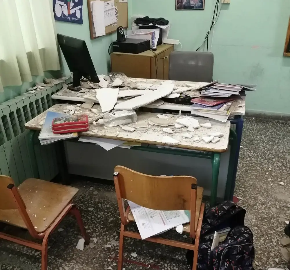 Η οροφή έπεσε επάνω στην έδρα και στα πρώτα θρανία της τάξης