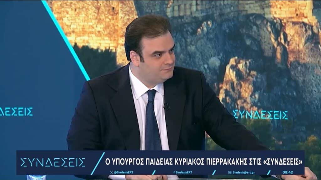 Ο υπουργός Παιδείας, Θρησκευμάτων και Αθλητισμού, Κυριάκος Πιερρακάκης, μίλησε στην εκπομπή «Συνδέσεις» της ΕΡΤ1 με τους Κώστα Παπαχλιμίντζο και Κατερίνα Δούκα, παρουσιάζοντας τις προτεραιότητες του υπουργείου και τις επικείμενες μεταρρυθμίσεις στην εκπαίδευση.