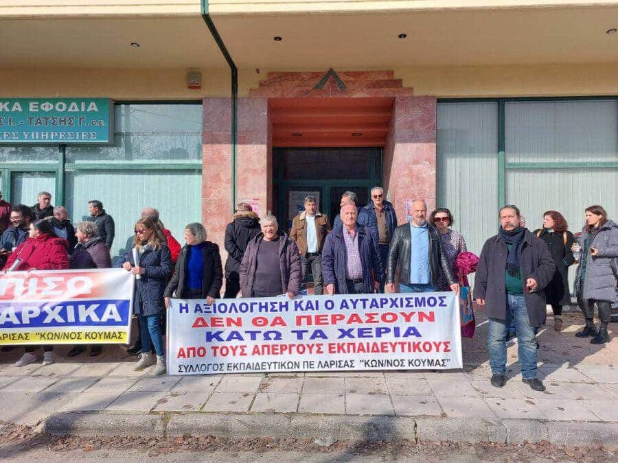 Πολύς ο κόσμος, πέρα από τους διωκόμενους και πολλοί άλλοι εκπαιδευτικοί, βρέθηκαν στην Α/βαθμια, με πολύ θυμό για τα όσα πρωτοφανή συμβαίνουν. Πρωτοφανές για την περιοχή της Λάρισας επίσης, ήταν η είσοδος των διαδηλωτών μέσα στο γραφείο της διευθύντριας με συνθήματα και πανό, η οποία προηγουμένως είχε καλέσει τηλεφωνικά, μέσω των διευθυντών των σχολείων, για προσωπική παραλαβή της κλήτευσης από την ίδια στο γραφείο της.