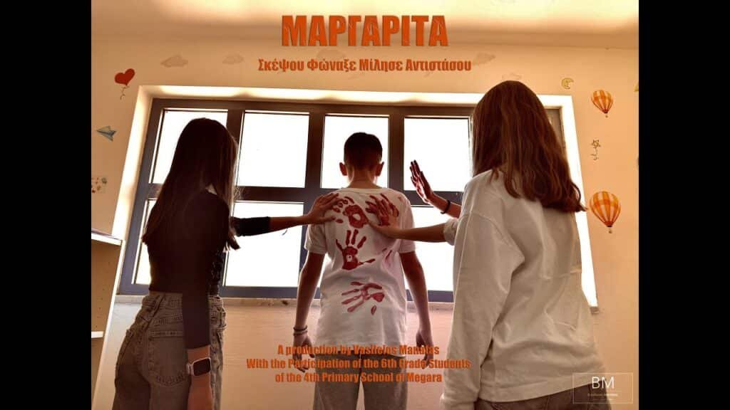 Μια δυνατή πρωτοβουλία ευαισθητοποίησης έρχεται από το 4ο Δημοτικό Σχολείο Μεγάρων και τους μαθητές της ΣΤ’ τάξης, με τίτλο «Μαργαρίτα». Ένα βίντεο που δημιουργήθηκε για να αφυπνίσει, να προβληματίσει και να δώσει φωνή σε εκείνους που πολλές φορές μένουν στη σιωπή.