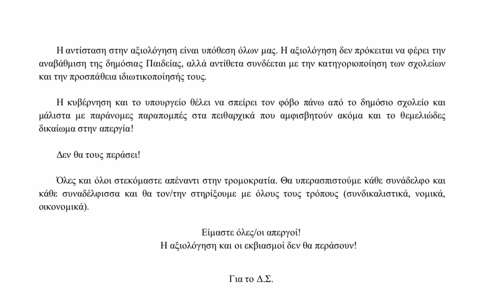 Με εντυπωσιακή συμμετοχή πραγματοποιήθηκε συγκέντρωση αλληλεγγύης σε εκπαιδευτικό του 4ου δημοτικού σχολείου Υμηττού που συμμετέχει στην Απεργία/Αποχή και διώκεται. Στη συγκέντρωση είχαν καλέσει ο σύλλογος εκπαιδευτικών “ο Μακρυγιάννης”, δημοτικές παρατάξεις, ο σύλλογος δημοκρατικών γυναικών Δάφνης-Υμηττού, η Ένωση Γονέων και Κηδεμόνων Δάφνης-Υμηττού, και ο σύλλογος γονέων και κηδεμόνων του 4ου Δ.Σ. Υμηττού, ενώ παραβρέθηκε και το μέλος του Δ.Σ. της ΔΟΕ Τάσος Γκαραγκάνης. Δείτε την ανακοίνωση του τοπικού συλλόγου εκπαιδευτικών: