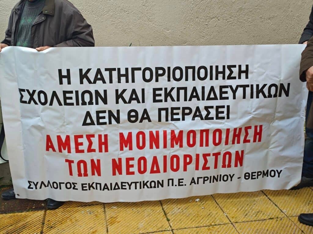 Με την παρουσία δεκάδων εκπαιδευτικών, μελών των τοπικών συλλόγων εκπαιδευτικών και μελών του ΔΣ της ΔΟΕ πραγματοποιήθηκε χθες 7/1/2025 κινητοποίηση στη ΔΙΠΕ Αιτωλοακαρνανίας ενάντια στην απόφαση της τοπικής διεύθυνσης να παραπέμψει σε πειθαρχικό ΑΠΕΡΓΟΥΣ εκπαιδευτικούς. Θυμηθείτε: Αιτωλοακαρνανία: Καλή Χρονιά με κινητοποίηση στη ΔΙΠΕ την Τρίτη – Συνεχίζει τις απειλές σε εκπαιδευτικούς και το 2025 το ΥΠΑΙΘΑ. Ψηφίσματα στήριξης από όλη τη χώρα έχουν εκδοθεί για τους διωκόμενους εκπαιδευτικούς για το συγκεκριμένο ζήτημα σε πολλά από τα οποία τεκμηριώνεται η παράνομη φύση της διοικητικής αυτής ενέργειας. Θυμηθείτε: Παράνομη και Αντισυνταγματική Πράξη της ΔΙΠΕ Αιτωλοακαρνανίας: Καταγγελία της Παραπομπής Εκπαιδευτικών σε Πειθαρχικό Συμβούλιο. Δείτε εικόνες από τη χθεσινή κινητοποίηση μέσα από τη δημοσίευση του μέλους του ΔΣ της ΔΟΕ Βιολέττας Πατέλη: