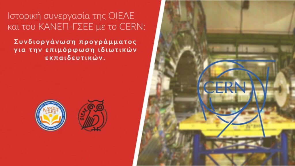 Ένα χρόνο πριν ξεκίνησε η ιστορική συνεργασία της ΟΙΕΛΕ και του ΚΑΝΕΠ-ΓΣΕΕ με το CERN για ένα πρόγραμμα επιμόρφωσης ιδιωτικών εκπαιδευτικών. Φέτος η συνεργασία αυτή ανανεώνεται και εμπλουτίζεται σημαντικά με το «Πρόγραμμα Επιμόρφωσης και Εκλαΐκευσης της Σύγχρονης Φυσικής» που θα πραγματοποιηθεί στις εγκαταστάσεις του CERN στη Γενεύη της Ελβετίας για περίπου 35 ιδιωτικούς εκπαιδευτικούς!