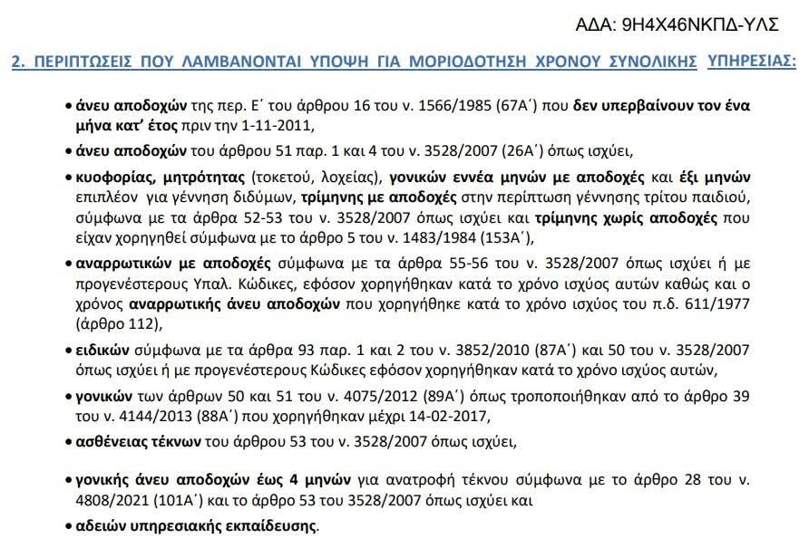 Όλες οι γονικές άδειες που παρέχονται με αποδοχές για φροντίδα τέκνων συνυπολογίζονται στον συνολικό χρόνο υπηρεσίας.