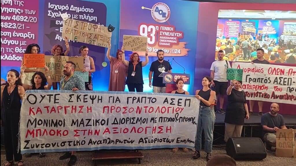 Παρέμβαση των Αναπληρωτών κατά του Γραπτού ΑΣΕΠ στη συνέλευση της ΔΟΕ – Βίντεο