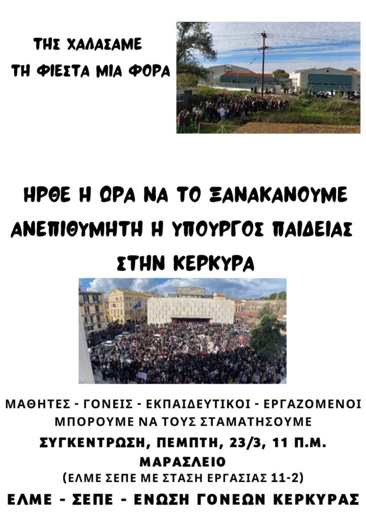 Για μια ακόμα φορά η Υπουργός Παιδείας είναι ανεπιθύμητη στην Κέρκυρα. Της χαλάσαμε μια φορά τη φιέστα, ήρθε η ώρα να της χαλάσουμε και δεύτερη.