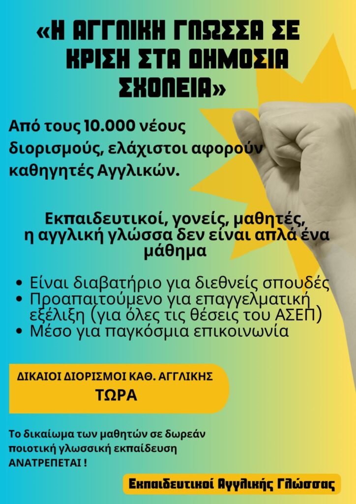 Επιστολή από τον Σύλλογο Καθηγητών Αγγλικής Γενικής και Ειδικής.