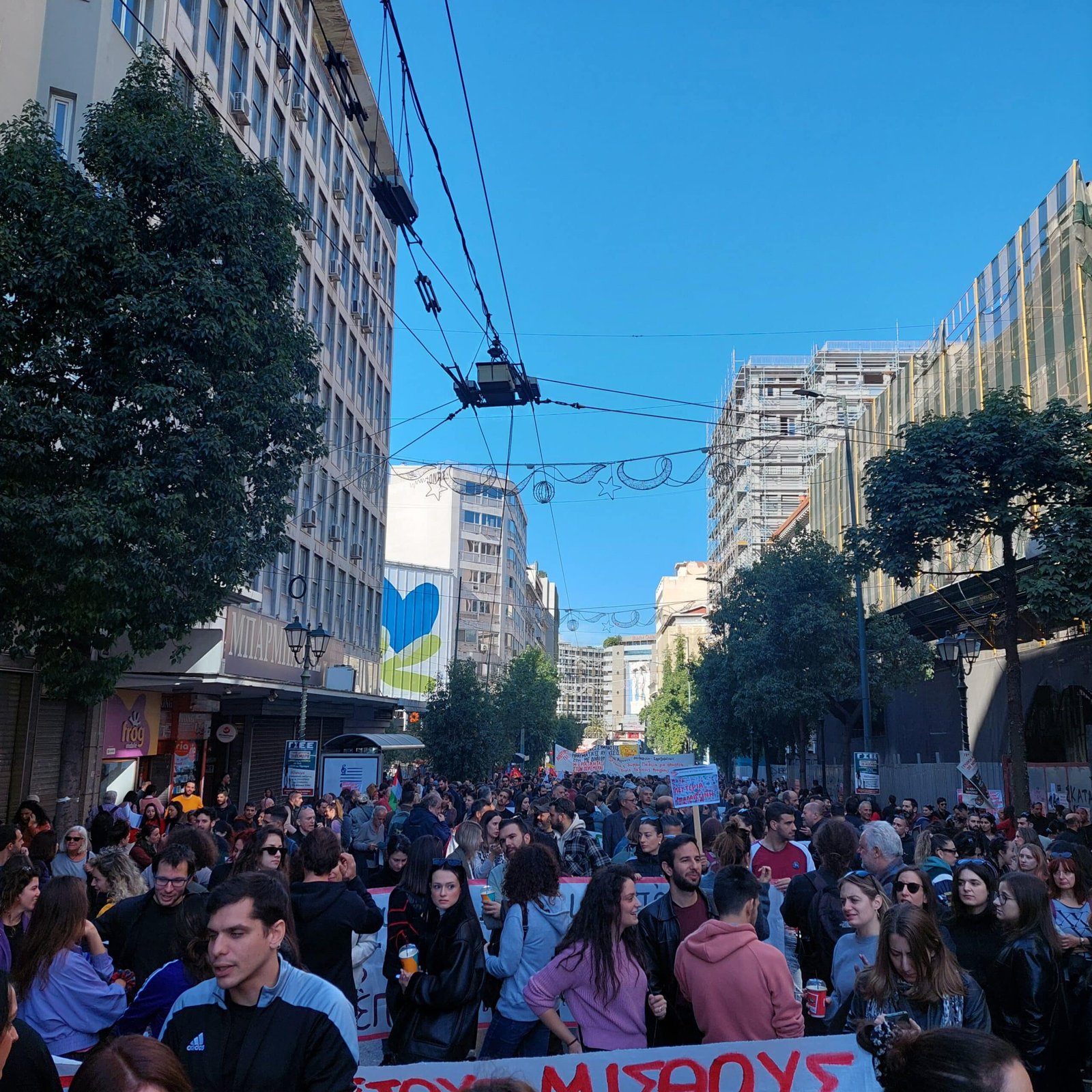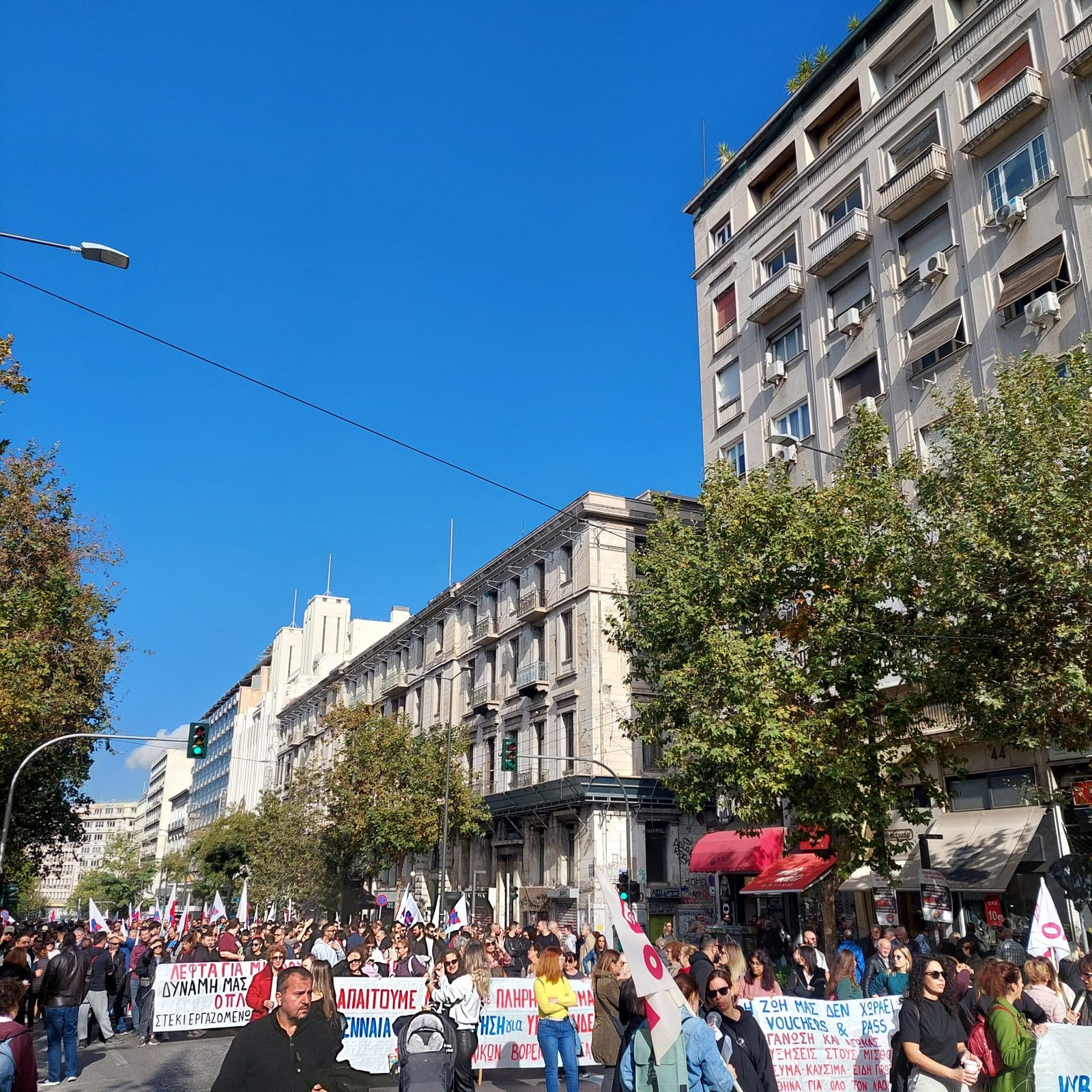 Τεράστια συγκέντρωση κόσμου αυτή τη στιγμή στο κέντρο της Αθήνας. Δεκάδες χιλιάδες απεργοί έχουν κατακλύσει τις οδούς Πανεπιστημίου, Σταδίου, Αιόλου, τις Πλατείες Κοραή, Κλαυθμώνος και ο κόσμος φτάνει μέχρι την πλατεία Ομονοίας και το Σύνταγμα.