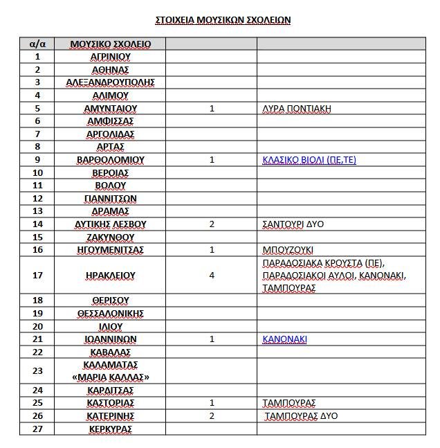 «Τοπική προκήρυξη για πρόσληψη ωρομισθίων εκπαιδευτικών κλάδων ΠΕ79.01 και ΤΕ16.00 ή ιδιωτών εμπειροτεχνών μουσικών (ΕΜ16) με Μουσική Ειδίκευση « Κρουστά Ευρωπαϊκά».